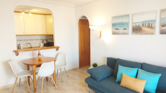 Az apartman egy jól felszerelt nappali - konyhából, egy hálószobából, fürdőszobából, és egy tágas teraszból áll. A teraszról csodálatos kilátás nyílik a tengerre, az alicantei öbölre és a várra. A másik irányban pedig a hegyek látványában és színpompás naplementékben gyönyörködhet.